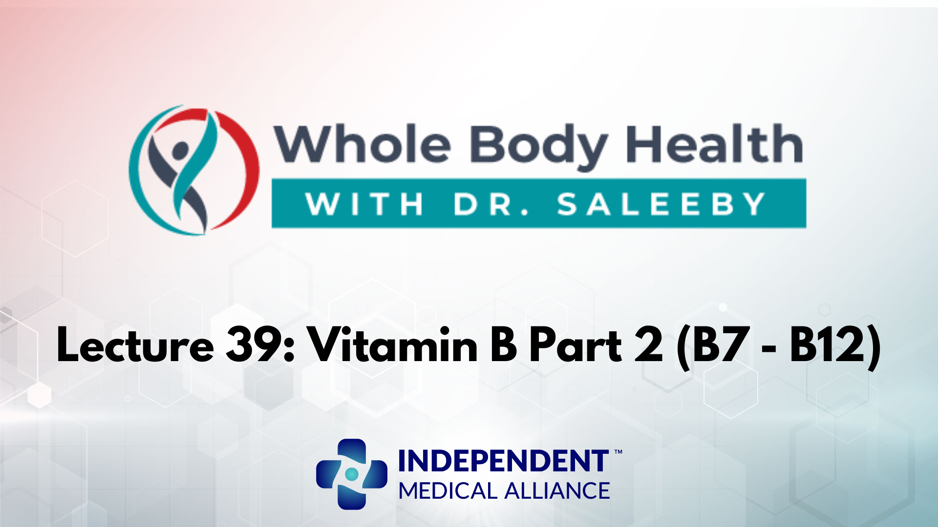 In this episode of Whole Body Health, IMA Senior Fellow Dr. Yusuf (JP) Saleeby continues his discussion on B-complex vitamins, focusing on vitamins B7 through B12—including their essential roles in the body, sources, and symptoms of deficiency.