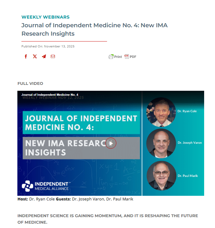 Join Dr. Ryan Cole with Dr. Joseph Varon & Dr. Paul Marik as they dive into the latest from the Journal of Independent Medicine, already number 4, they look at research around immune health, chronic disease, oncology & more.