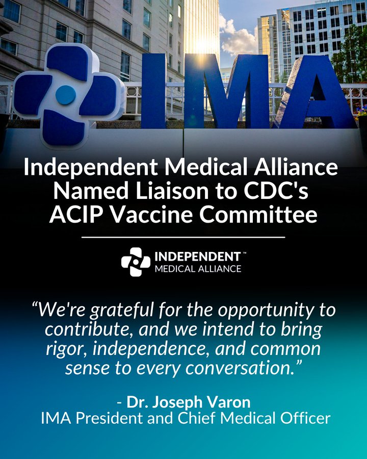 FULL STATEMENT: WASHINGTON, D.C. – The Independent Medical Alliance (IMA) has been named a liaison representative to the Centers for Disease Control and Prevention’s (@CDCgov) Advisory Committee on Immunization Practices (ACIP), the federal panel that shapes vaccine recommendations for every American.