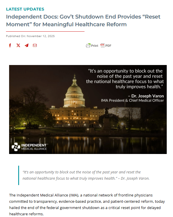 Hi there, just up on the IMA website, please see the IMA Statement on the end of the shutdown. It’s time for a national healthcare reset.