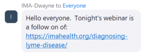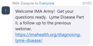 If you haven’t a Zoom link for tonight’s webinar – just register to get a zoom invite sent to you here – https://imahealth.org/weekly-webinars/ Just click the register button.