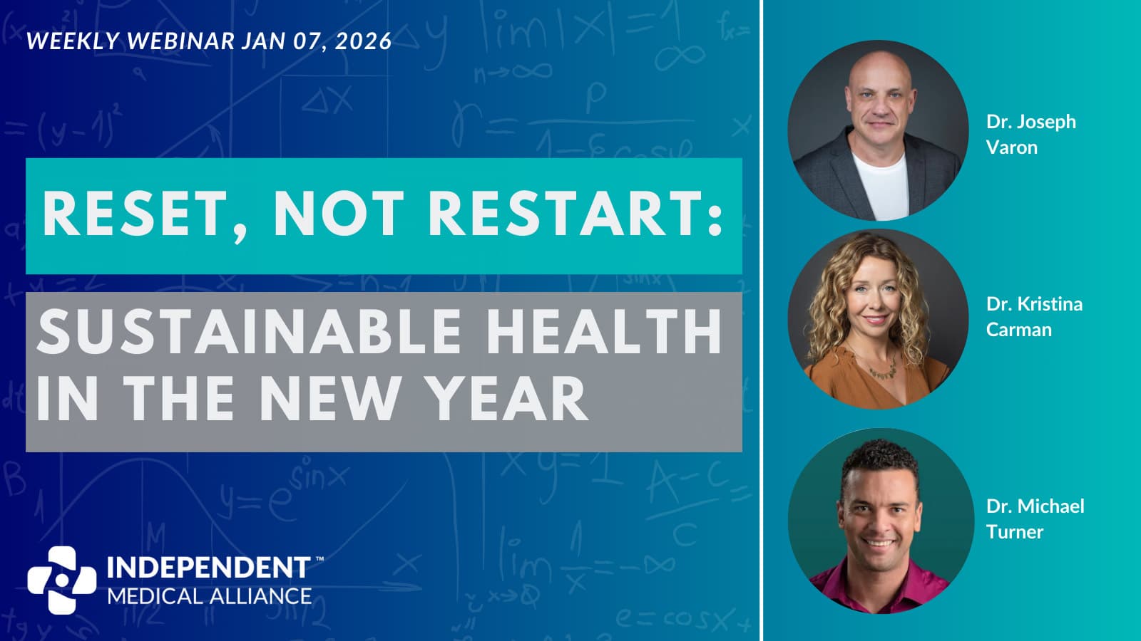 The start of a new year often brings pressure to overhaul everything at once—diet, exercise, sleep, supplements. But the all-or-nothing approach that fills gyms in January empties them by February. This Wednesday, IMA Co-Founder Dr. Joseph Varon sits down with IMA Senior Fellows Dr. Kristina Carman and Dr. Michael Turner for a grounded, evidence-based conversation about what actually works: small, sustainable changes that build momentum instead of burnout.