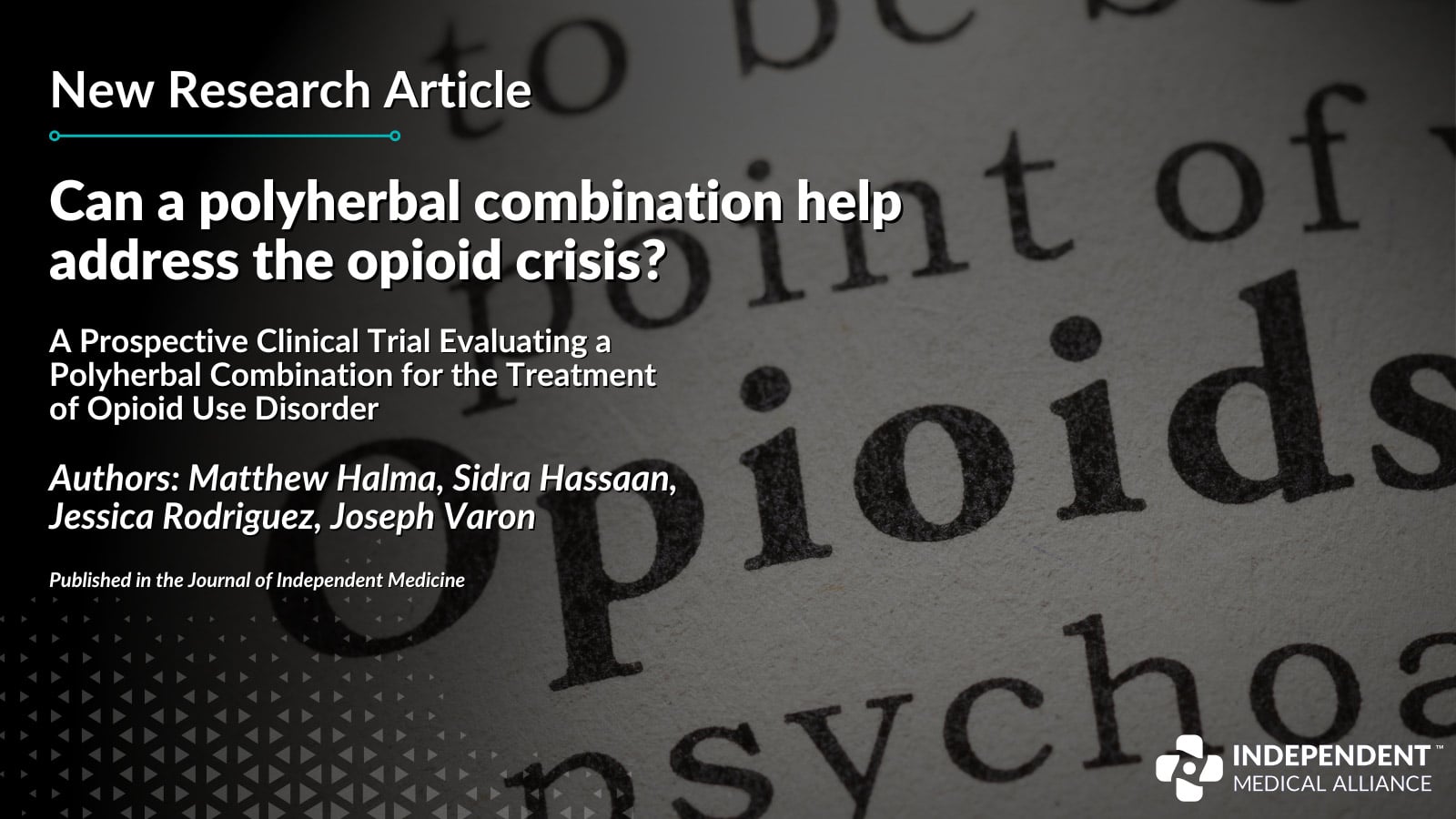 New studies by IMA researchers Matthew Halma, Dr. Paul Marik, Dr. Joseph Varon, and Dr. JP Saleeby spotlight integrative care and herbal medicine as promising tools for chronic pain and opioid use disorder.